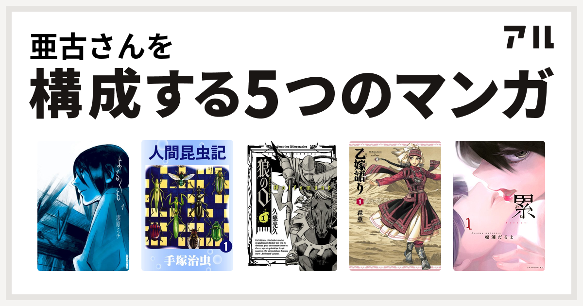 亜古さんを構成するマンガはよるくも 人間昆虫記 狼の口 ヴォルフスムント 乙嫁語り 累 私を構成する5つのマンガ アル